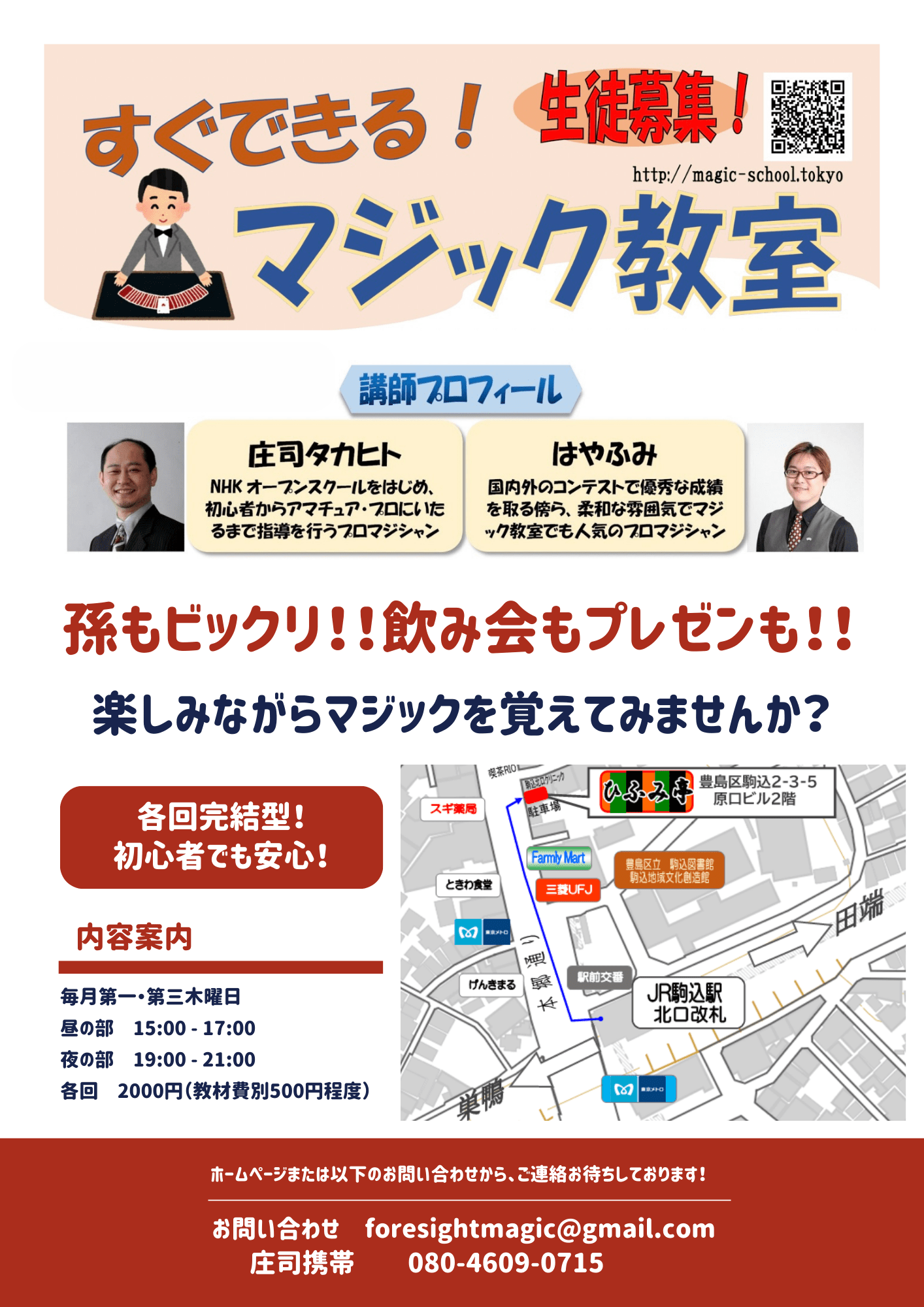 - 2025/4/17(木)より「駒込マジックルーム」から移転し、「駒込ひふみ亭」にて開催いたします。